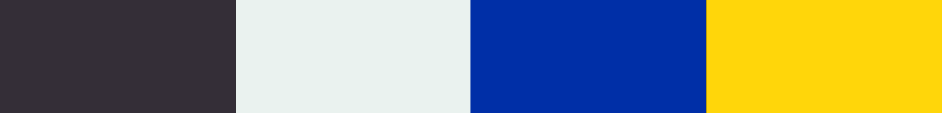 黑#342E37(主)白EAF2EF(辅)蓝#002FA7(主要点缀色)金#FFD60A(次要点缀色)